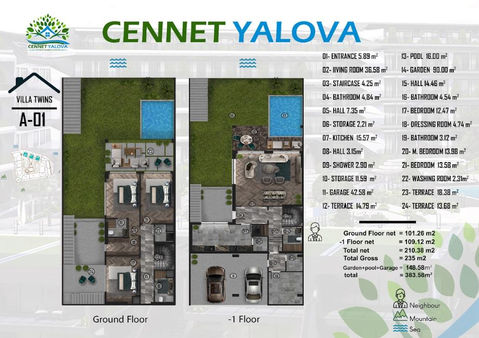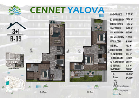 Apartments patterns: 1+1 - 2+1 - 2+2 - 3+1 - 3+2 - 4+1 - 4+2 duplex